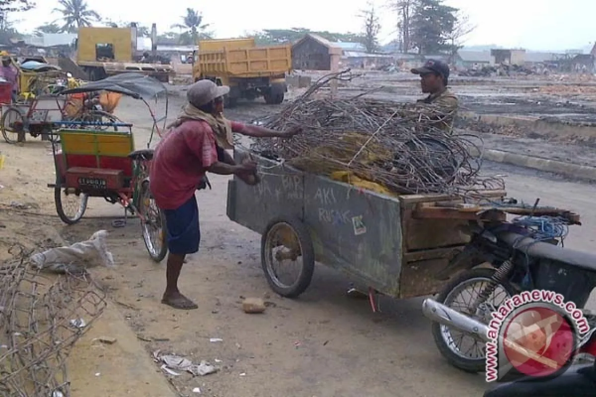 Kendari, (ANTARA News) - Pemulung antusias mengumpulkan besi bekas di lokasi kebakaran pasar ikan higienis Kota Kendari, Sukawesi Tenggara untuk dijual kembali kepada penampung.