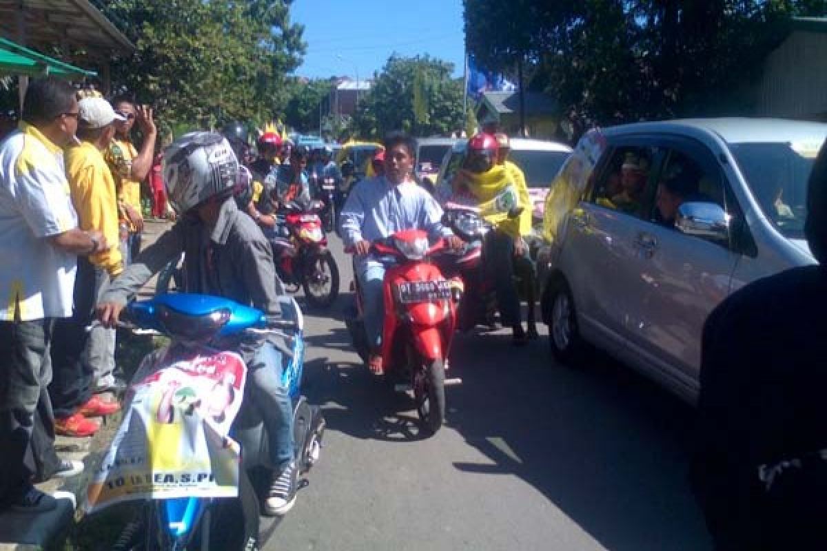 Belasan ribu massa yang menghadiri kampanye terbuka Partai Golkar tersebut diawali dengan konvoi keliling Kota Baubau, yang mengakibatkan arus lalulintas di beberapa ruas jalan di kota tersebut macet.