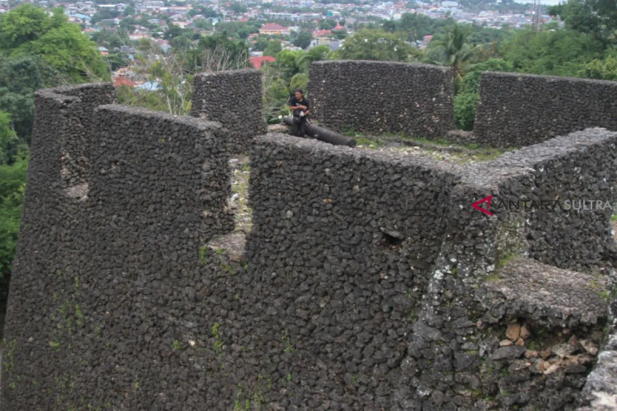 Pengunjung berada disalah satu sudut Benteng Keraton Buton yang terdapat sejumlah meriam didalamnya di Kota Mara Baubau, Sulawesi Tenggara, Rabu (20/2/2019). Tahun 2006 benteng tersebut tercatat sebagai benteng terluas di dunia dalam Guinness Book of Record dan Museum Rekor Indonesia, Benteng yang dibangun pada pemerintahan Labuke Sultan Gafurul Wadudu tahun 1632 luasnya mencapai 22,8 hektar dan panjang kelilingnya mencapai 22,7 kilometer dan didalamnya terdapat sejumlah meriam yang terpasang di berbagai sisi. ANTARA FOTO/Jojon/19.