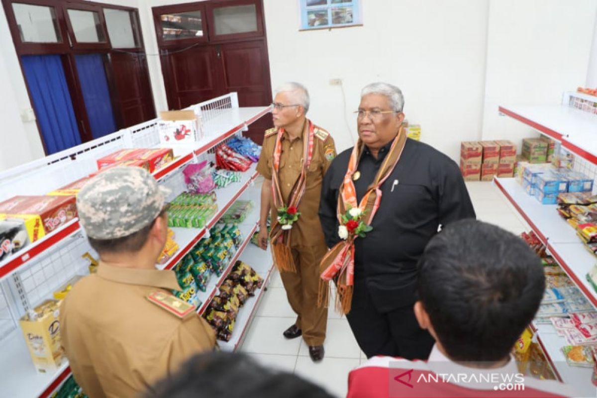 Rangkaian kegiatan peresmian bank sekolah dan kantin sehat, Gubernur bersama Plt Kadisdikbud Sultra Asrun Lio dan Kepala sekolah SMK Negeri Kendari Ali Koa meninjau mini market yang diberi nama Edmart di sekolah itu.