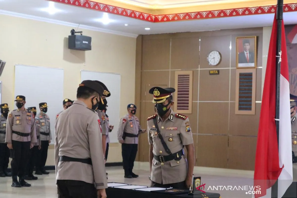 Serah terima jabatan yang berlangsung dalam tatanan protokol kesehatan karena pandemi virus Corona dipimpin Kapolda Sultra Irjen Pol Drs Yan Sultra Indrajaya, SH, Selasa.