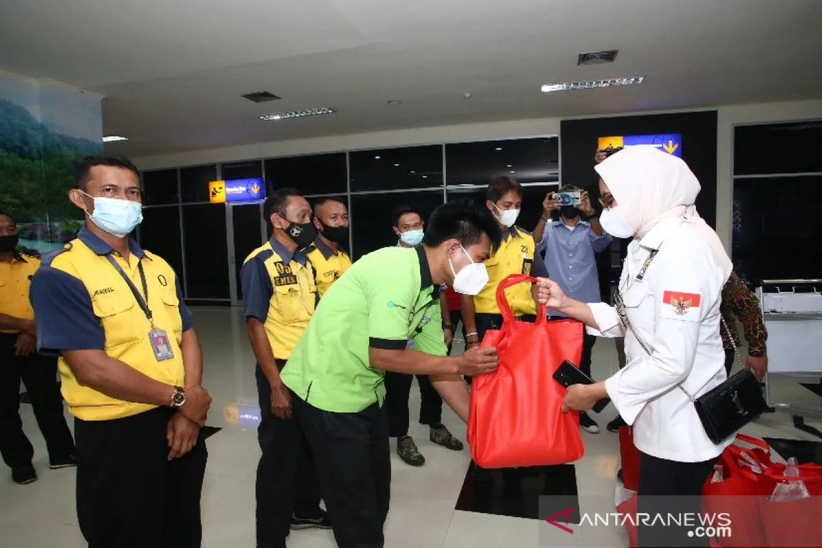 Kendari (ANTARA) - Anggota DPD RI Dapil Sulawesi Tenggara, Wa Ode Rabia Al Adwia Ridwan memberikan bantuan sembako kepada pramuantar atau pramubarang (porter) Bandara Haluoleo yang terdampak selama pemberlakuan pembatasan kegiatan masyarakat (PPKM) level 3.
