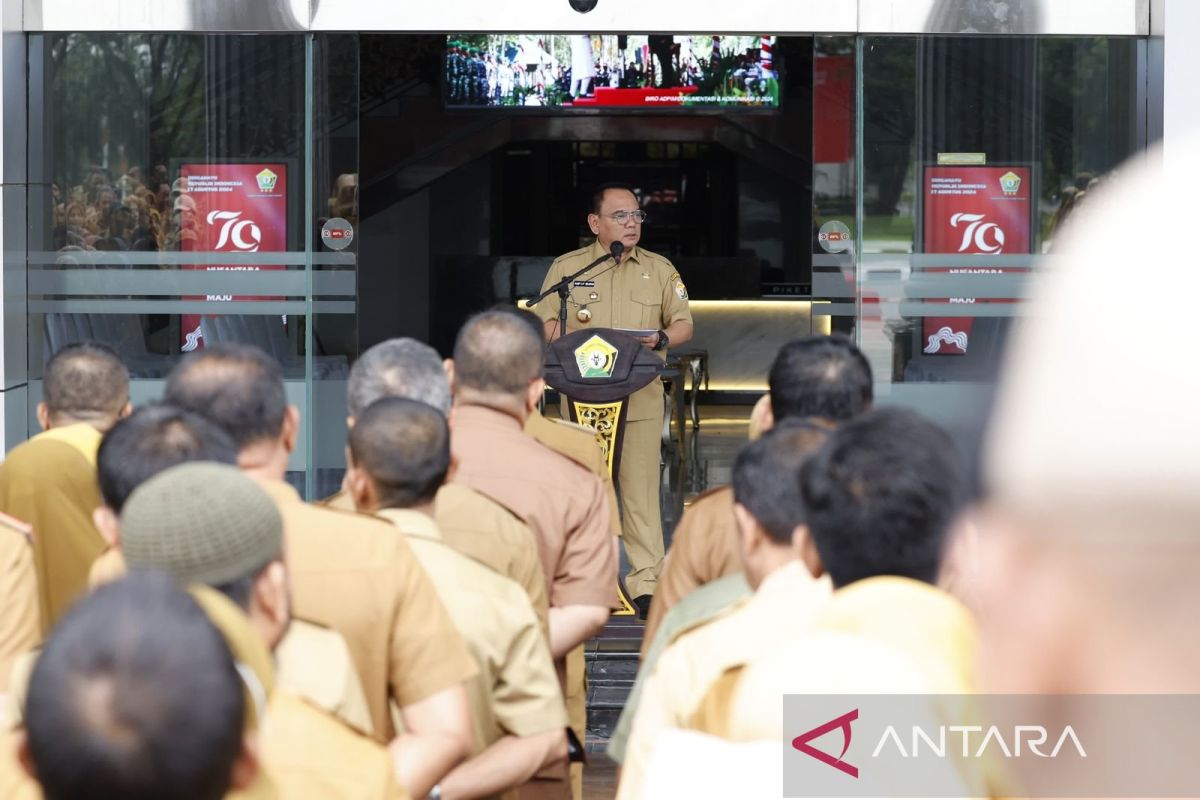 Kendari (ANTARA) - Penjabat (Pj.) Gubernur Sulawesi Tenggara (Sultra), Andap Budhi Revianto, memimpin apel gabungan Aparatur Sipil Negara (ASN) di lingkungan Pemerintah Provinsi Sultra, Senin.