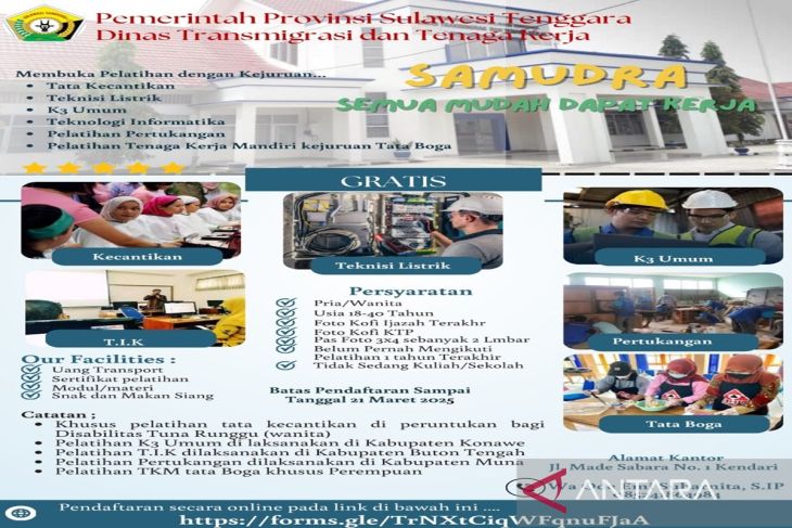 Dinas Tenaga Kerja dan Transmigrasi (Disnakertrans) Provinsi Sulawesi Tenggara (Sultra) akan membuka peluang dan kesempatan kerja melalui program "SAMUDRA" (Semua mudah dapat kerja) di tahun 2025.