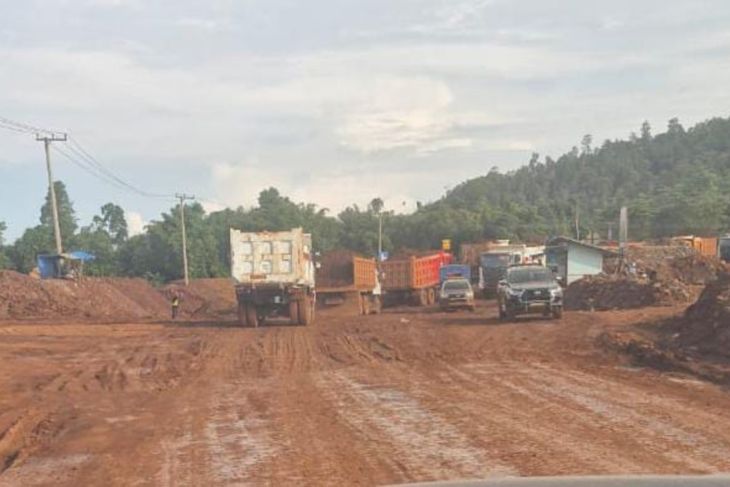 Sebab, jalanan yang seharusnya aspal kini terbalut oleh tanah akibat lalu-lalangnya sejumlah mobil alat berat yang melalui jalan itu.