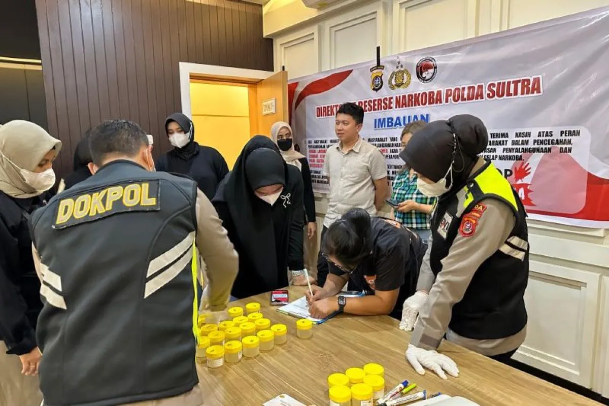 Kendari (ANTARA) - Direktorat Reserse Narkoba (Dit Resnarkoba) Kepolisian Daerah (Polda) Sulawesi Tenggara (Sultra) melakukan inspeksi mendadak (sidak) penyalahgunaan narkoba dan tes urine pekerja di tempat hiburan malam (THM) di Kota Kendari, Provinsi Sulawesi Tenggara.