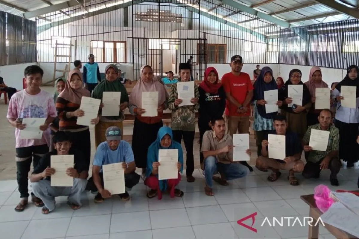 Kendari (ANTARA) - Kantor Pertanahan Kabupaten Muna Barat, Sulawesi Tenggara (Sultra), menyerahkan sertifikat tanah kepada ratusan warga penerima manfaat melalui Program Pendaftaran Tanah Sistematis Lengkap (PTSL) 2025 di Desa Sidamangura.