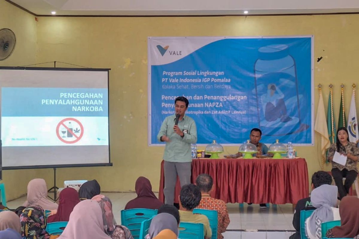 Kolaka (ANTARA) - PT Vale Indonesia Tbk IGP Pomala memberikan edukasi bahaya narkoba lewat sosialisasi pencegahan dan penanggulangan penyalahgunaan Narkotika, Psikotropika, dan Zat adiktif lainnya (NAPZA) bagi masyarakat di Desa Puubunga, Kecamatan Baula, Kabupaten Kolaka, Sulawesi Tenggara.