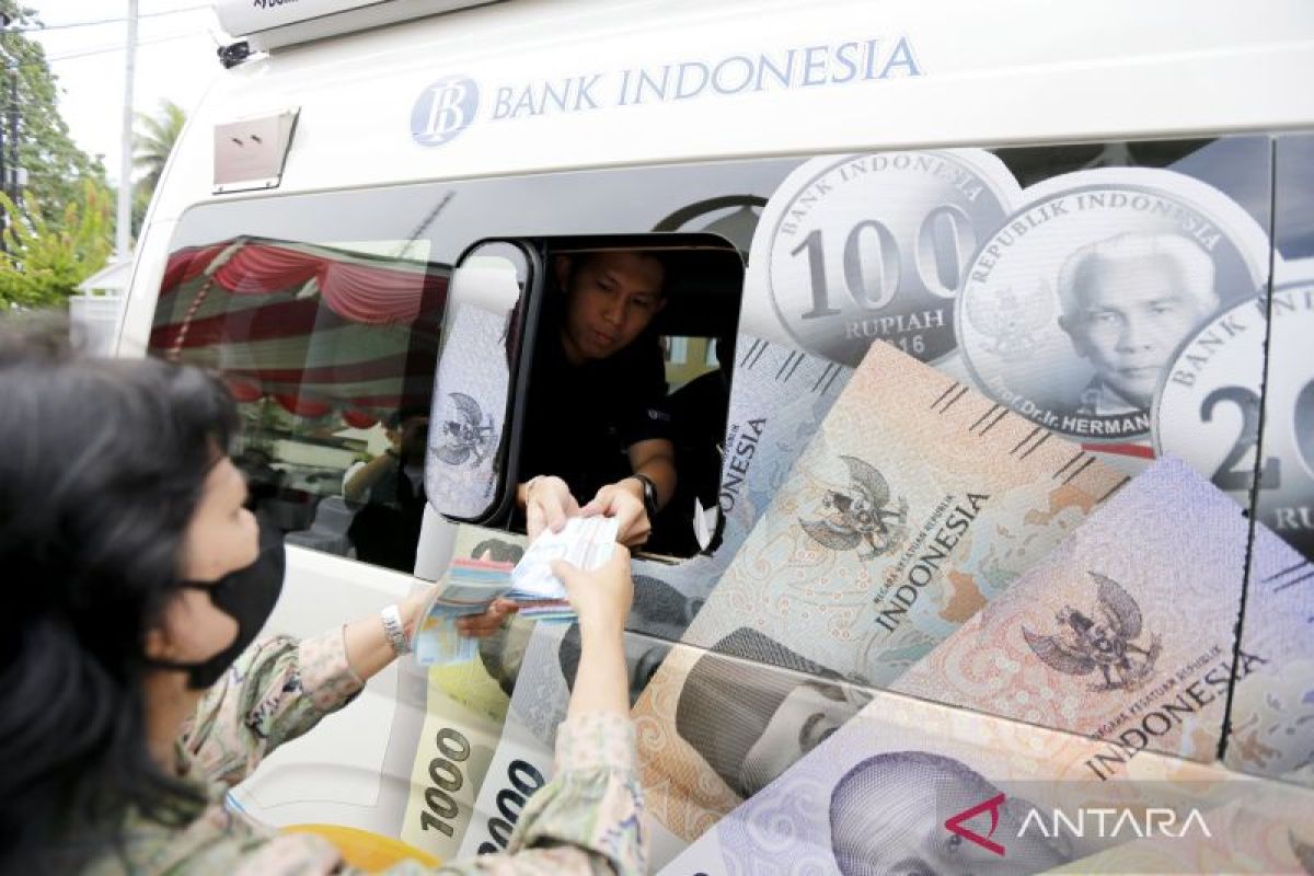 Warga menukarkan uang di mobil kas keliling di Gereja Imanuel, Kota Gorontalo, Gorontalo, Senin (15/12/2025). KPw Bank Indonesia Provinsi Gorontalo menggelar kegiatan Semarak Rupiah Penuh Damai (Serunai) dalam rangka pelayanan penukaran uang baru dan pecahan kecil bagi masyarakat menjelang perayaan Natal 2025 dan Tahun Baru 2026 dengan menyiapkan uang pecahan besar sebanyak Rp91 miliar dan Rp6,9 miliar untuk uang pecahan kecil. ANTARA FOTO/Adiwinata Solihin/nz