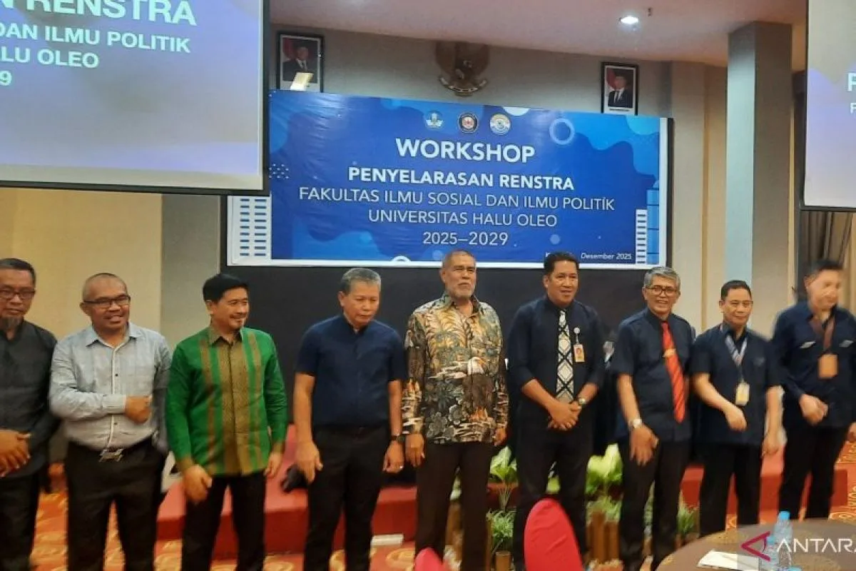 Upaya tersebut ditandai dengan penguatan kerja sama internasional, pembenahan tata kelola akademik, serta penyelarasan Rencana Strategis (Renstra) FISIP UHO periode 2025–2029 melalui Workshop Penyelerasan Rentra Fisip UHO di salah satu hotel di Kendari, Selasa (16/12/2025) yang dibuka Pelaksana tugas (Plt) Rektor UHO Dr.Herman.