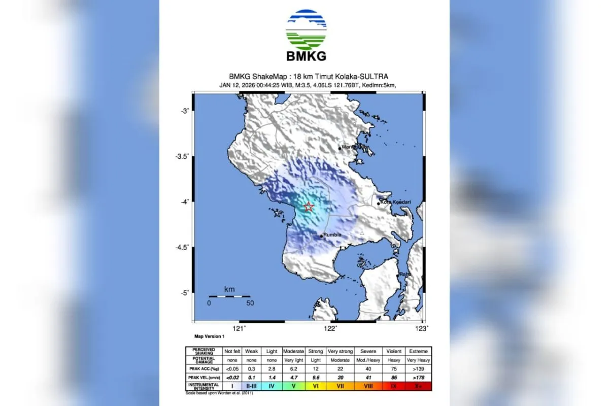 Pelaksana tugas (Plt) Kepala BBMKG Wilayah IV Nasrol Adil saat dihubungi di Kendari, Senin, mengatakan bahwa dua daerah di Bumi Anoa tersebut diguncang gempa bumi tektonik, pada pukul 01.44 Wita.
