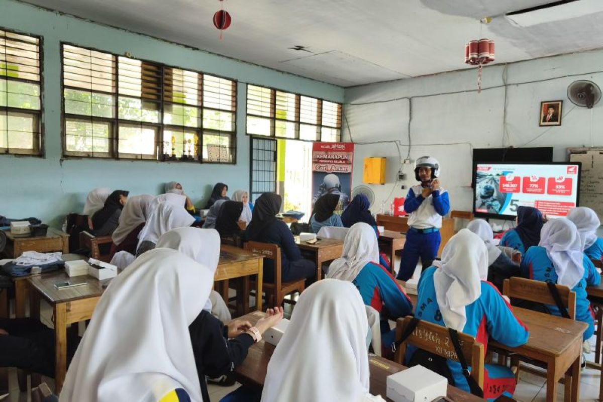 Kendari (ANTARA) - Astra Motor Sulawesi Selatan (Asmo Sulsel) bersama Satuan Lalu Lintas Polres Gowa memberikan edukasi keselamatan berkendara (safety riding) kepada puluhan siswa SMAN 8 Gowa, Sulawesi Selatan, Selasa.